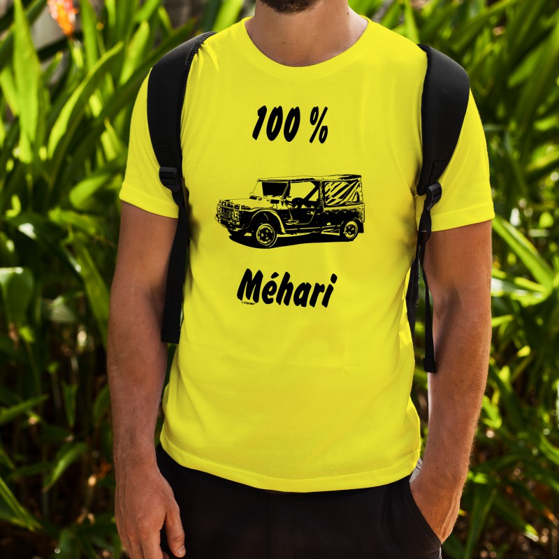 Uomo Funny T-Shirt illustrata con citazione francese divertente, "100 % Méhari" e una vecchia Citroën Méhari