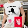 Donna moda T-Shirt, 100% cotone, illustrata con ✚ Aussi vite que...