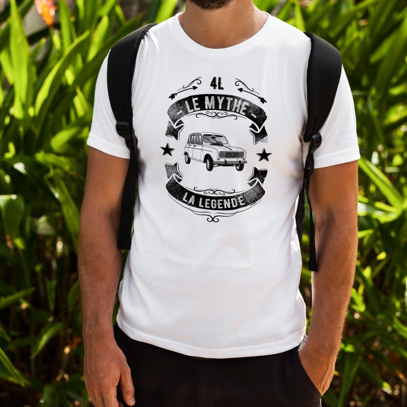 Uomo Funny T-Shirt umoristica illustrata dello slogan "4L, le mythe, la Légende" e il celebre Renault 4L, versione francese
