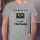 maglietta di modo umoristico illustrato con una cassetta audio (nastro magnetico) e la citazione francese "Je ne suis pas vieux, je suis vintage"