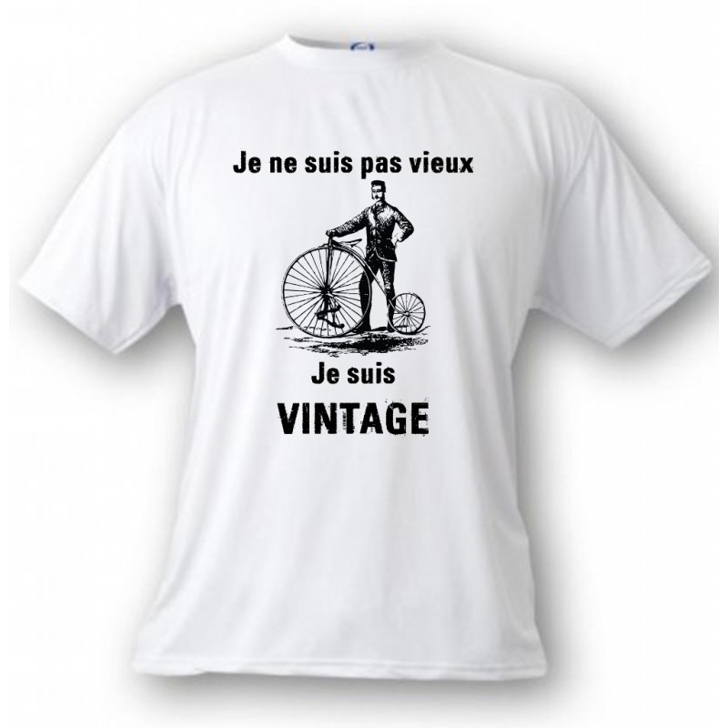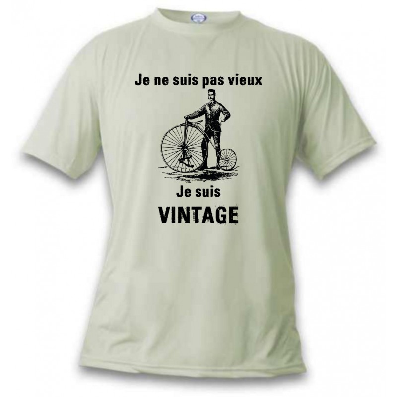 Uomo Funny T-Shirt umoristica illustrata dello slogan "Je ne suis pas vieux, je suis vintage" e una vecchia bici, versione francese