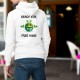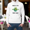 Uomo felpa bianco a cappuccio umoristico illustrato con il nostro emoticon alieno (Alien Smiley) pronto per un grande abbraccio e lo slogan ★ Ready for Free Hugs ★
