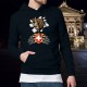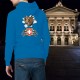 Uomo Maglione di cotone con cappuccio con la testa di un orso ringhiante che strappa la maglietta e tiene tra le chele lo stemma della Svizzera