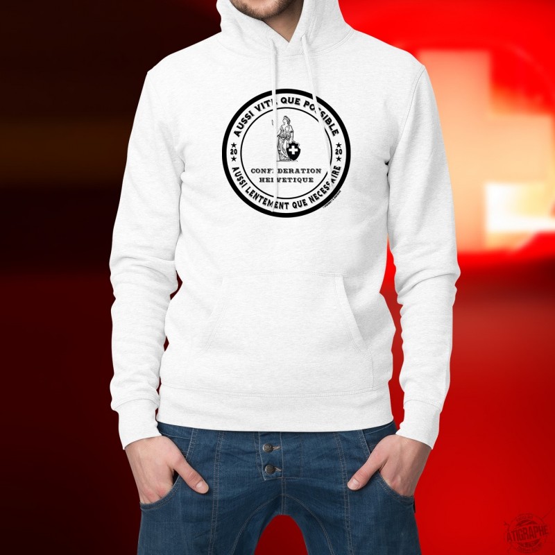 Uomo felpa bianco a cappuccio ★ Aussi vite que possible ★ Aussi lentement que nécessaire ★