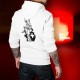 Uomo Sweat bianco a cappuccio illustrato di Signora Helvetia avendo barattato la sua lancia contro un armamento più moderno...