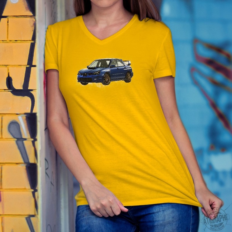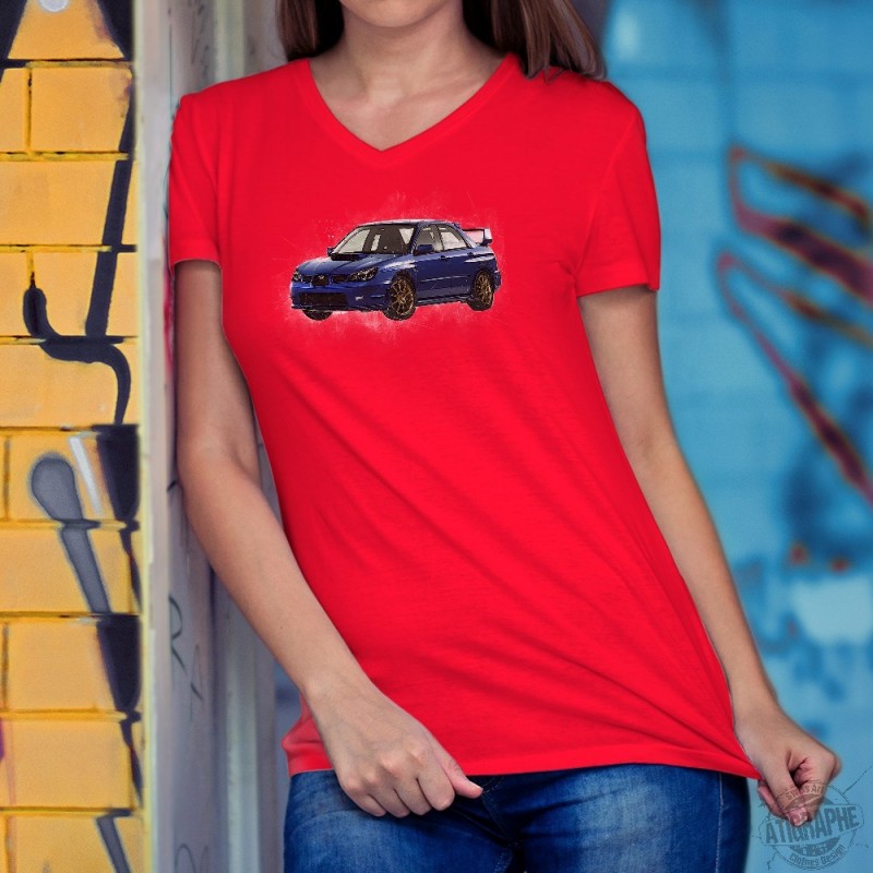 Donna moda cotone T-Shirt T-shirt illustrata del disegno effetto schizzo della Subaru Impreza WRX STI versione 2006, versione speciale per i Vallesi