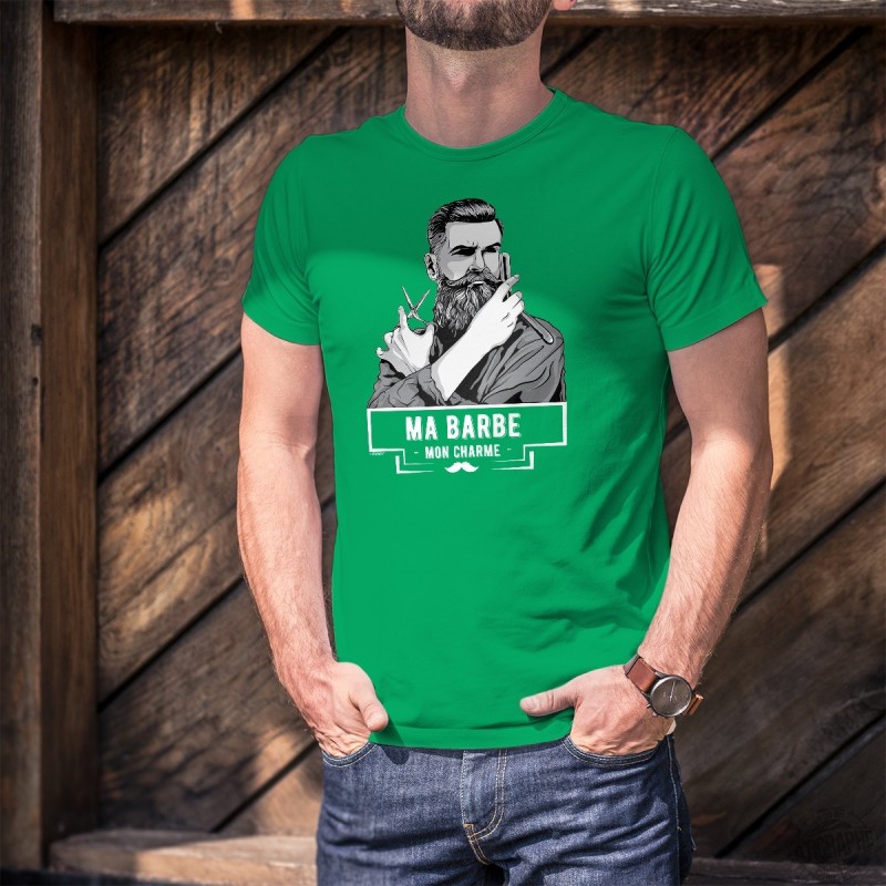 Moda cotone T-Shirt illustrato con la citazione francese "Ma barbe, mon Charme"