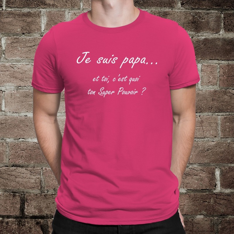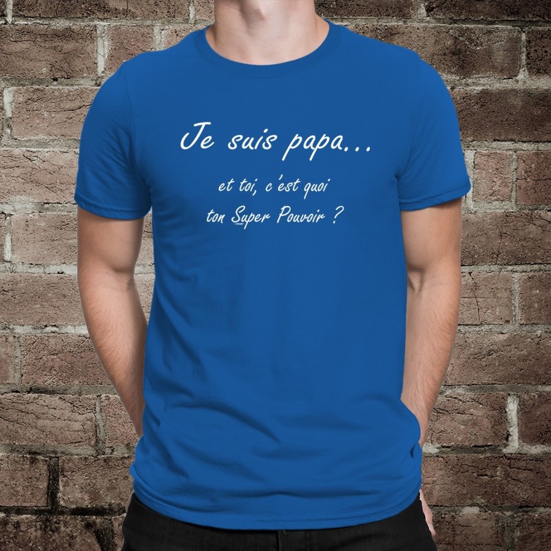 Moda cotone T-Shirt illustrato con la citazione francese " PAPA Super Pouvoir"