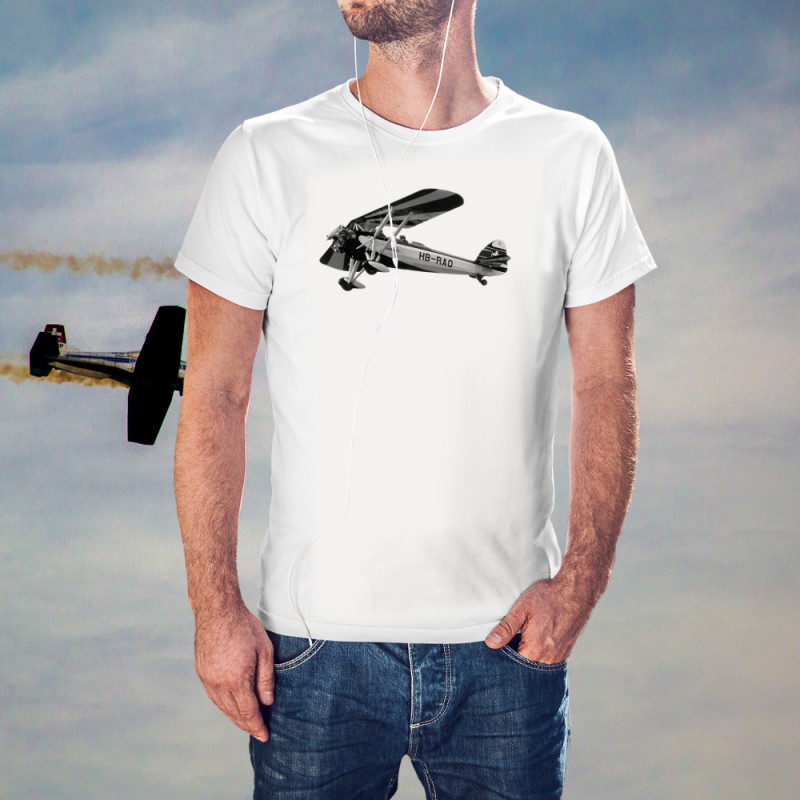 T-shirt moda maschile illustrato da un monoplano Morane-Saulnier MS317, costruito nel 1937