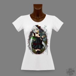 T-shirt Moda in un taglio molto femminile, illustrata con un'emoticon che rappresenta un aspetto morbido nello stile Kawaii (aggettivo giapponese che significa carino)