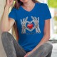 T-shirt umoristica in cotone per donna con ❤ I Love U ❤ Ti amo ❤ e lo scheletro di due mani che formano un cuore
