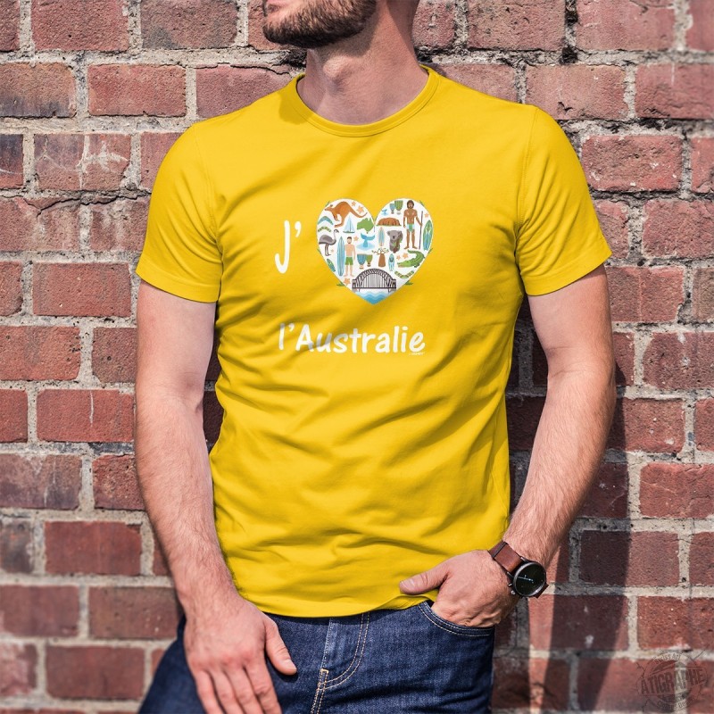 Moda cotone T-Shirt illustrato con la citazione francese ❤ J'aime l'Australie ❤ Con questa maglietta doni 6CHF al WWF per l'Australia