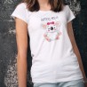Donna moda T-Shirt, 100% cotone, illustrata con ✚ Aussi vite que...