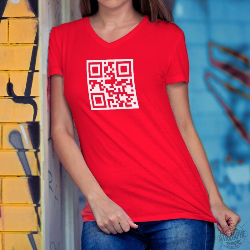 Donna moda cotone T-Shirt illustrato con la citazione francese "Coeur libre - QR-code"