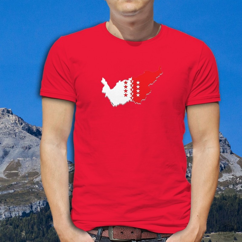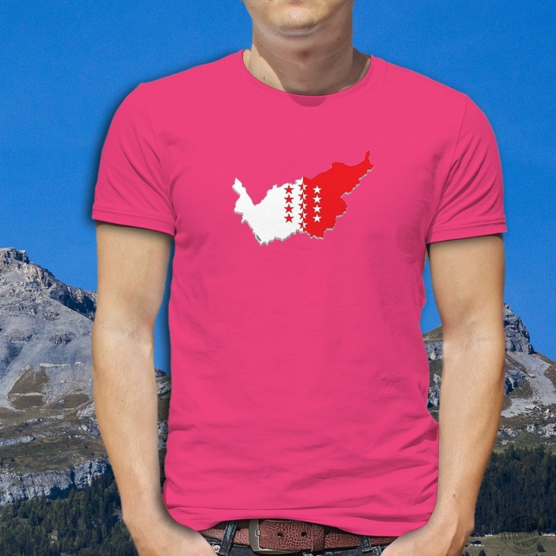 T-shirt da uomo in cotone 100% illustrata dai bordi cantonali del Vallese nei colori di ★ Vallese ★ in 3D