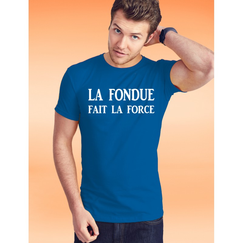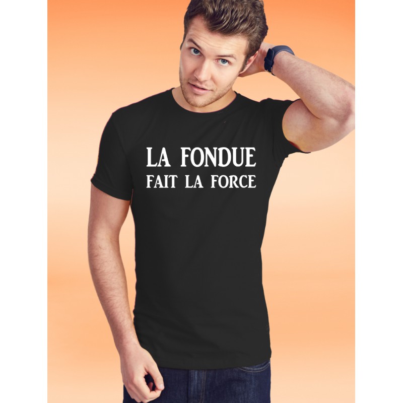 Uomo Moda cotone T-Shirt illustrato citando umoristico, "La Fondue fait la Force" In omaggio alla fonduta di formaggio
