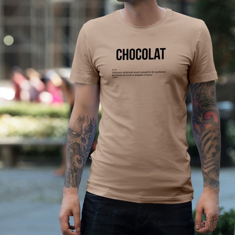 T-shirt da uomo illustrata con il preventivo "CHOCOLAT"