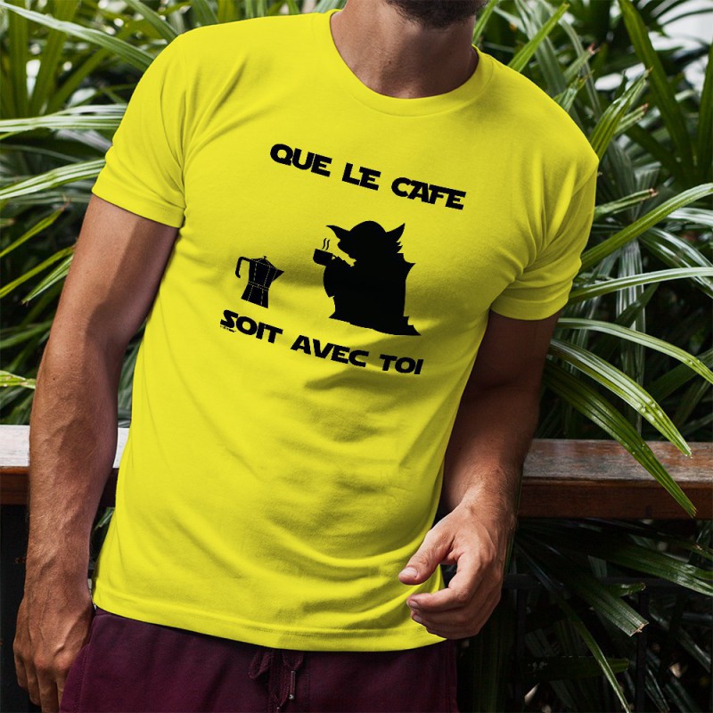 Funny T-Shirt umoristica illustrato citando umoristico, "Que le Café soit avec Toi"
