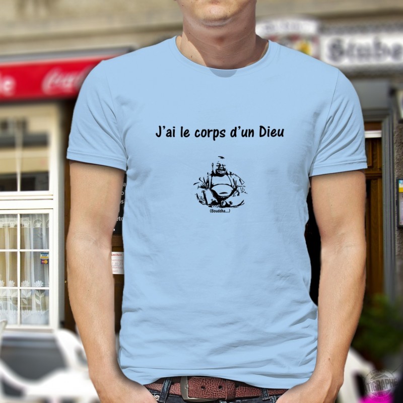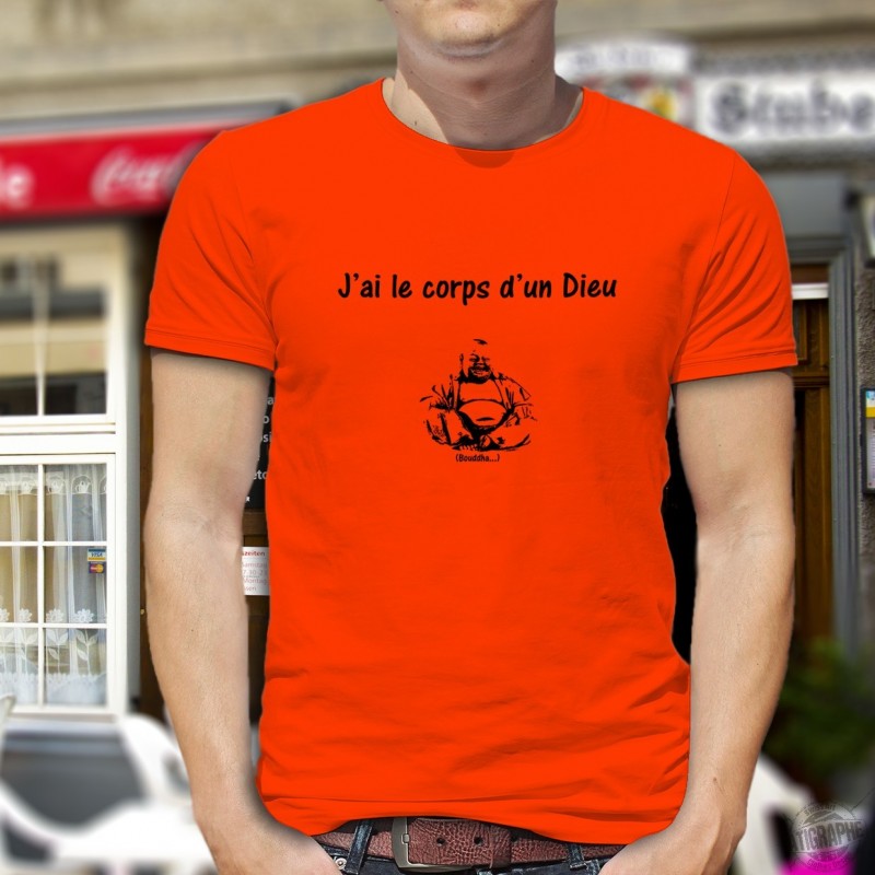Maglietta umoristica dell'uomo di modo illustrata con una rappresentazione di Buddha