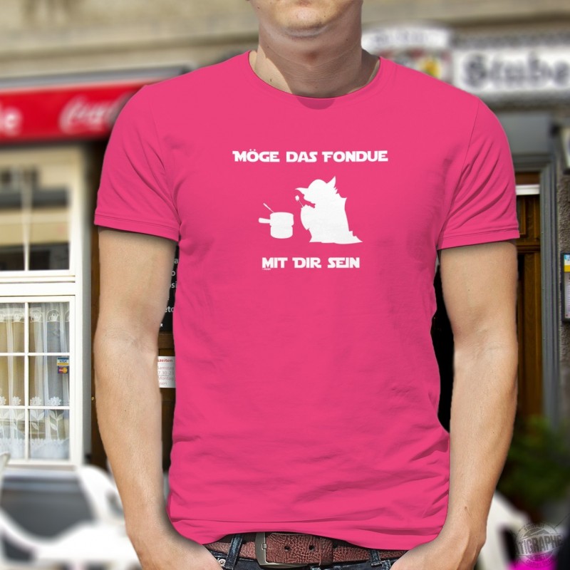 Uomo Moda cotone T-Shirt illustrato citando umoristico, "Möge das Fondue mit Dir sein"