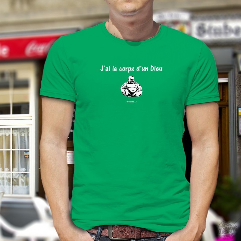 Uomo Moda cotone T-Shirt illustrato citando umoristico, "J'ai le corps d'un Dieu ★