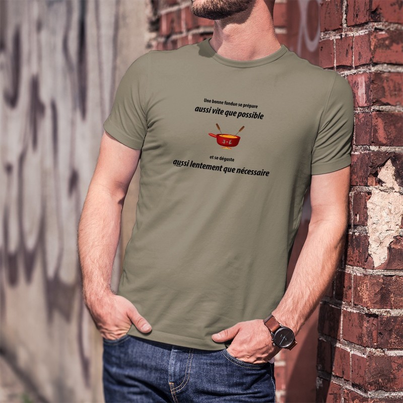 T-shirt da uomo illustrata con Signora Helvetia e "Aussi vite que...