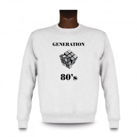 Uomo Funny Sweatshirt illustrato con un Rubik's cube e la citazione "Generation 80's"